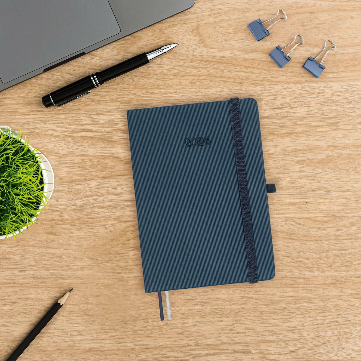 Le agenda MÍNIMAL TEXTURA de Finocam est un agenda de format petit et pratique, conçu pour vous accompagner au quotidien avec un style moderne et fonctionnel. Sa couverture rigide est recouverte d’un matériau en polyuréthane à toucher gommeux, offrant une sensation de texture unique tout en garantissant résistance et durabilité. Ses dimensions approximatives de 11,8 x 16,8 cm la rendent facile à transporter et à utiliser en toutes circonstances. Cet agenda est fabriqué avec du papier de qualité de 80 g/m², sans chlore et certifié FSC, assurant un support idéal pour une écriture confortable et nette. Il présente une organisation d’un jour par page, facilitant une planification détaillée sur les 12 mois de l’année 2026, incluant des informations utiles comme les fêtes et jours fériés nationaux. Parmi ses éléments pratiques figurent les coins microperforés pour localiser rapidement et visuellement le jour ou la semaine en cours, ainsi qu’un indicateur latéral pour identifier facilement chaque mois, optimisant son usage. De plus, il intègre des accessoires utiles tels qu’un ruban marque-page, un élastique pour le maintenir fermé en toute sécurité et un anneau porte-stylo permettant d’avoir toujours un instrument d’écriture à portée de main. L’intérieur comprend une poche soufflet en papier tissé résistant à l’usage, pour ranger notes ou petits documents. Son design en couleur bleue apporte une touche classique et polyvalente, idéale pour des environnements professionnels ou personnels où l’organisation efficace est valorisée. Le agenda Finocam MÍNIMAL TEXTURA allie qualité des matériaux et structure pensée pour faciliter la gestion du temps, offrant une solution compacte et pratique pour la planification annuelle.