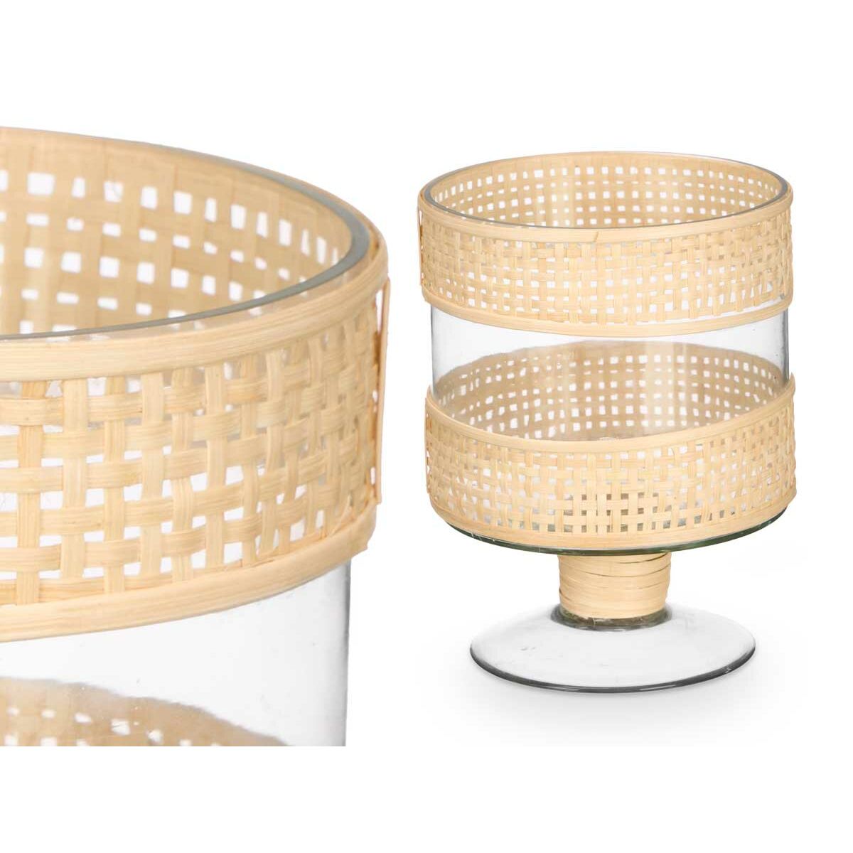 Bougeoir Gift Decor Transparent Naturel verre Rotin 15 x 20 x 15 cm (6 Unités)