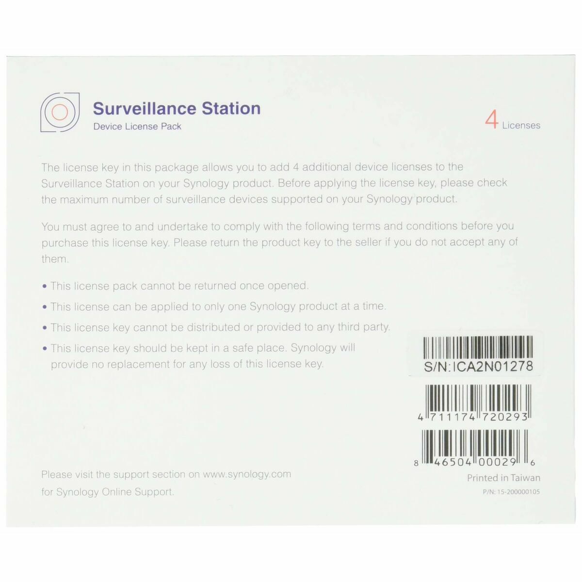 Câble HDMI Synology 4 cam Lic Pack Noir