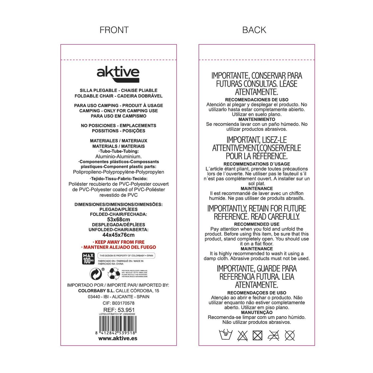 Vous voulez donner une touche d'originalité à votre maison ? Vous y arriverez grâce au Chaise Pliante Aktive Marin 44 x 76 x 45 cm (4 Unités).