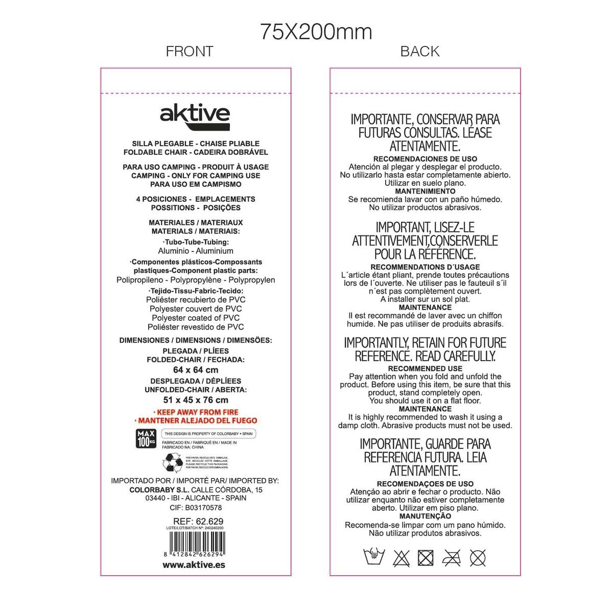 Vous voulez donner une touche d'originalité à votre maison ? Vous y arriverez grâce au Chaise Pliante avec Repose-Tête Aktive Flamingo Corail 51 x 76 x 45 cm (2 Unités).