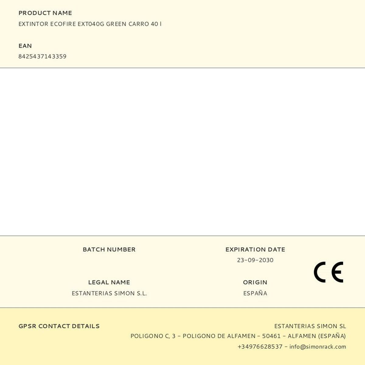 Extincteur d'incendie Simon Rack ecofire ext040g