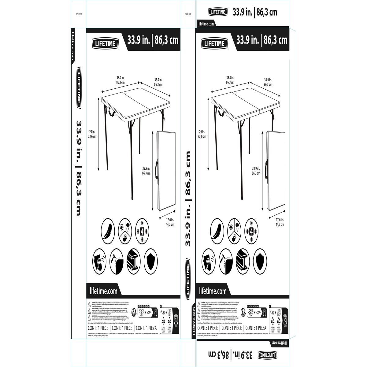 Table Piable Lifetime Blanc 86 x 74 x 86 cm