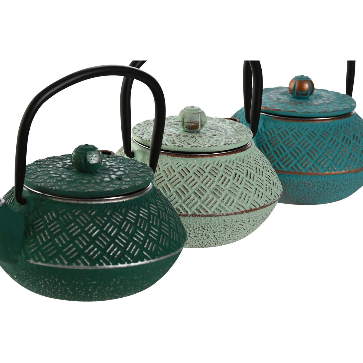 Théière Home ESPRIT Bleu Vert Acier inoxydable Fer 400 ml (3 Unités)