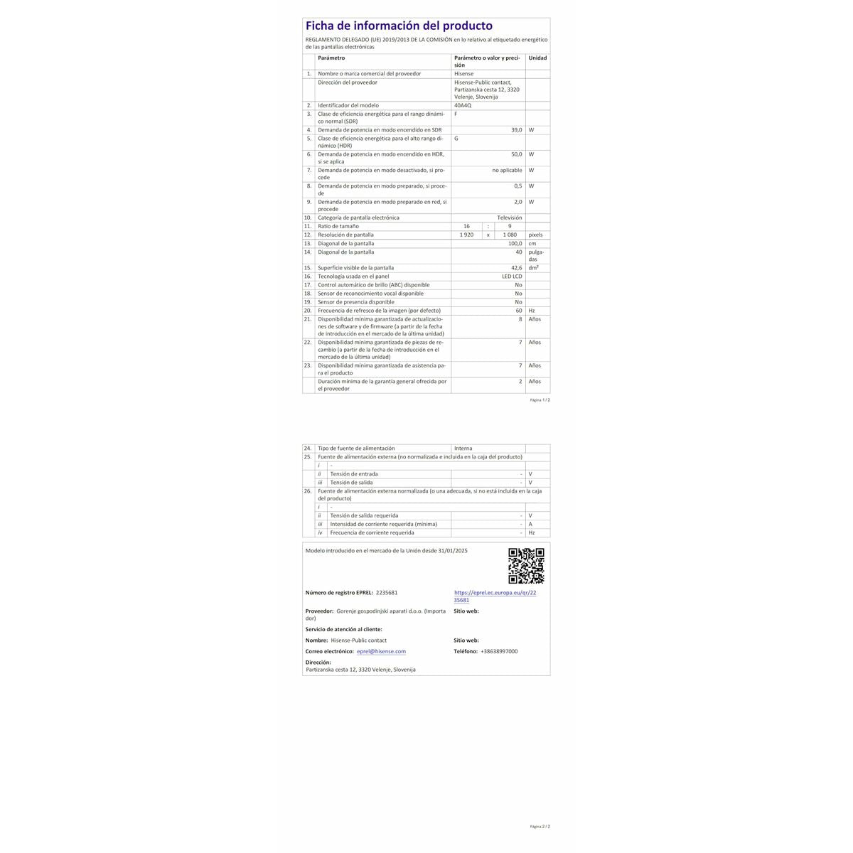 - Ecran: 40"